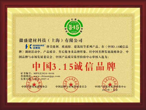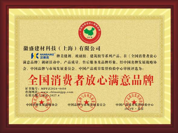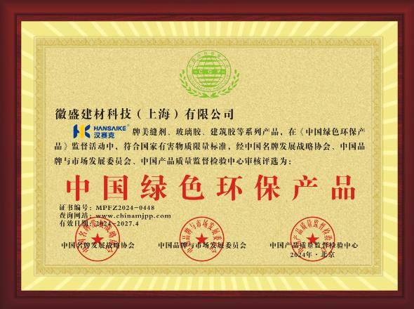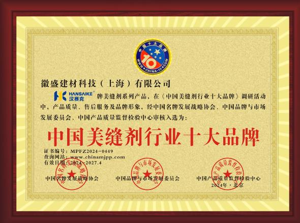 2024年4月贵单位生产的 汉赛克 品牌美缝剂、玻璃胶、建筑胶荣获; 中国美缝剂行业十大品牌 (MPFZ2024--0449) 中国绿色环保产品 (MPFZ2024--0448) |
